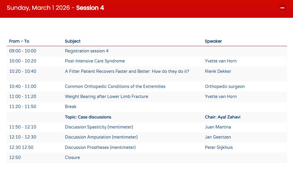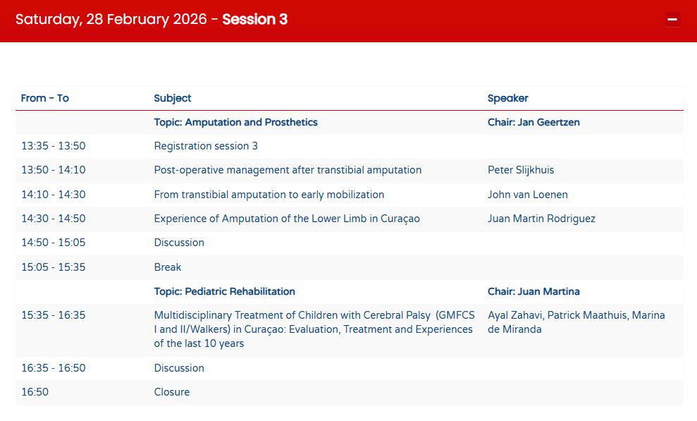 De NASKHO (Nederlands Antilliaanse Stichting Klinisch Hoger Onderwijs) organiseert van 27 februari t/m 1 maart 2026 het 11th Post Graduate Course in Rehabilitation Medicine in Willemstad, Curacao. Met presentaties van diverse Nederlandse revalidatieartsen en revalidatieartsen uit het Caraïbisch gebied.