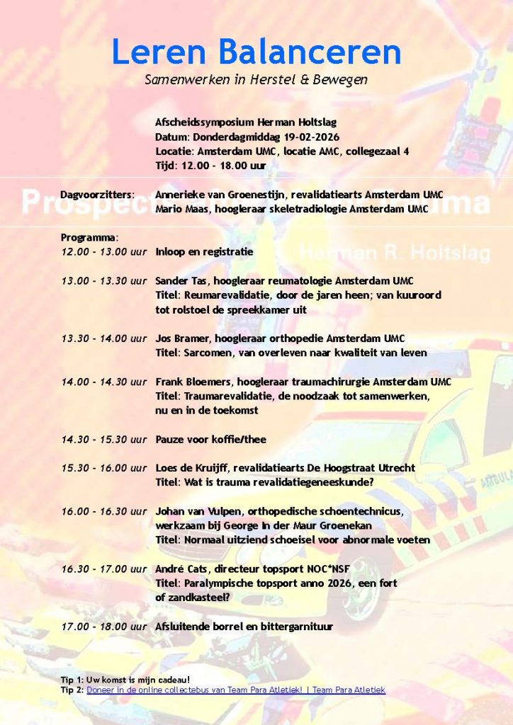 Op donderdagmiddag 19 februari 2026 is het afscheidssymposium van dr. Herman Holtslag met als thema ‘Leren balanceren’.