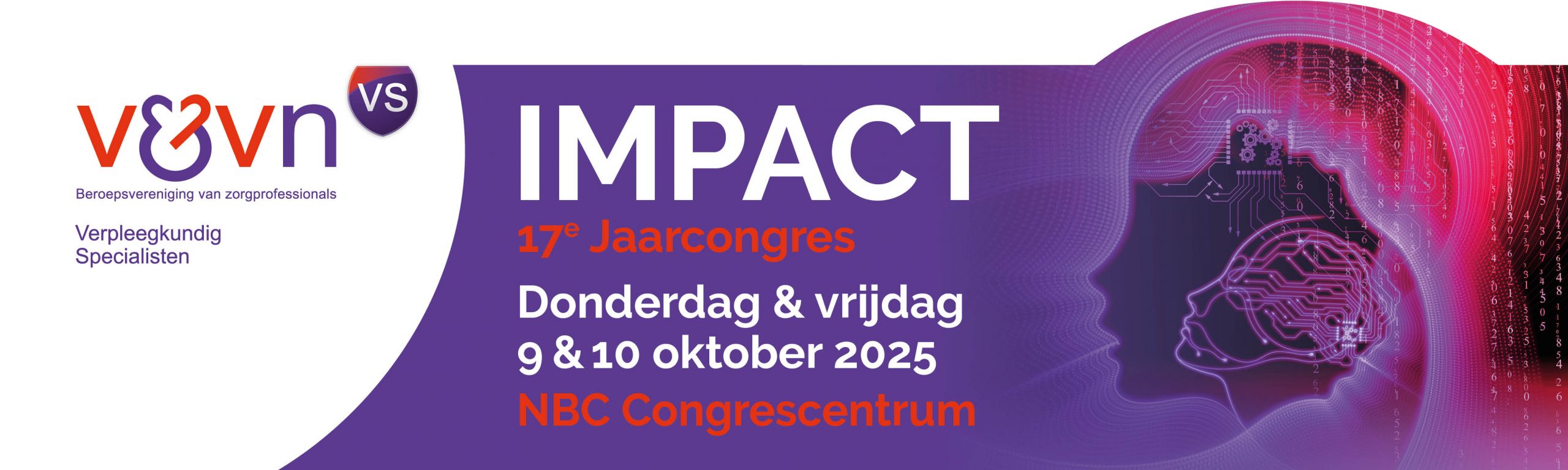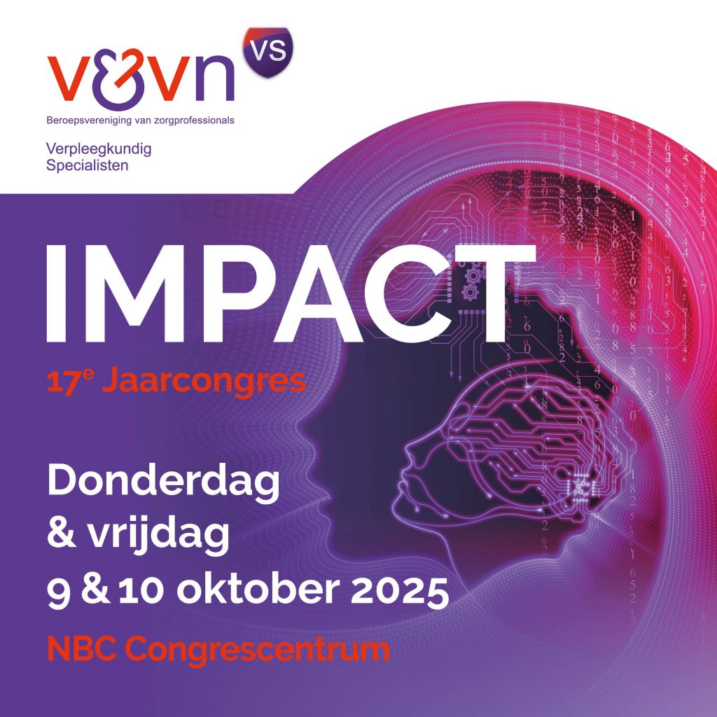 De congrescommissie van V&VN VS nodigt je met trots uit voor het 17e jaarcongres, dat plaatsvindt op 9 en 10 oktober 2025 in het NBC Congrescentrum. Dit jaar staat het congres in het teken van IMPACT.