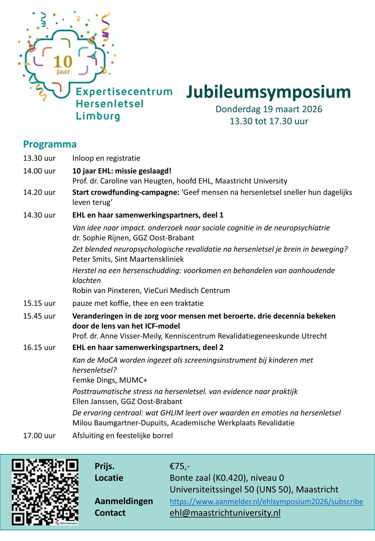 Op donderdagmiddag 19 maart organiseert het Expertisecentrum Hersenletsel Limburg haar 10 jarig jubileumsymposium.