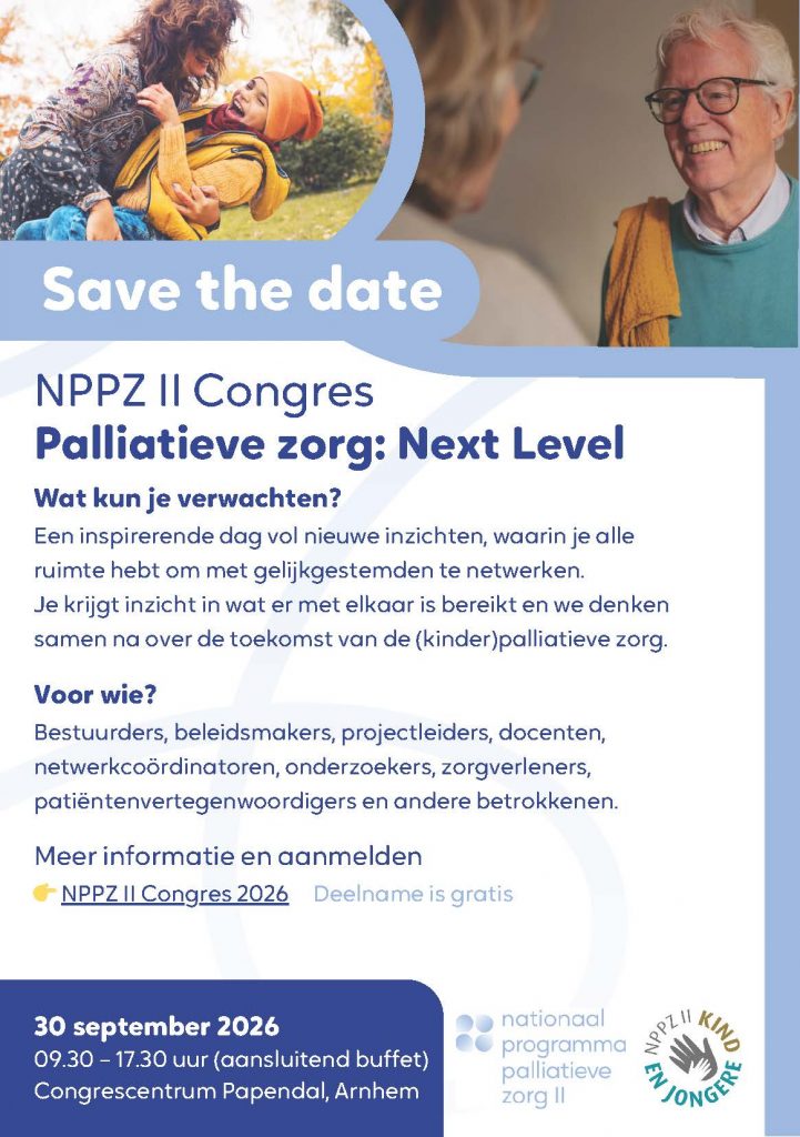 Op 30 september 2026 organiseert het Kenniscentrum Kinderpalliatieve zorg het NPPZ II Congres – Palliatieve zorg: Next Level.