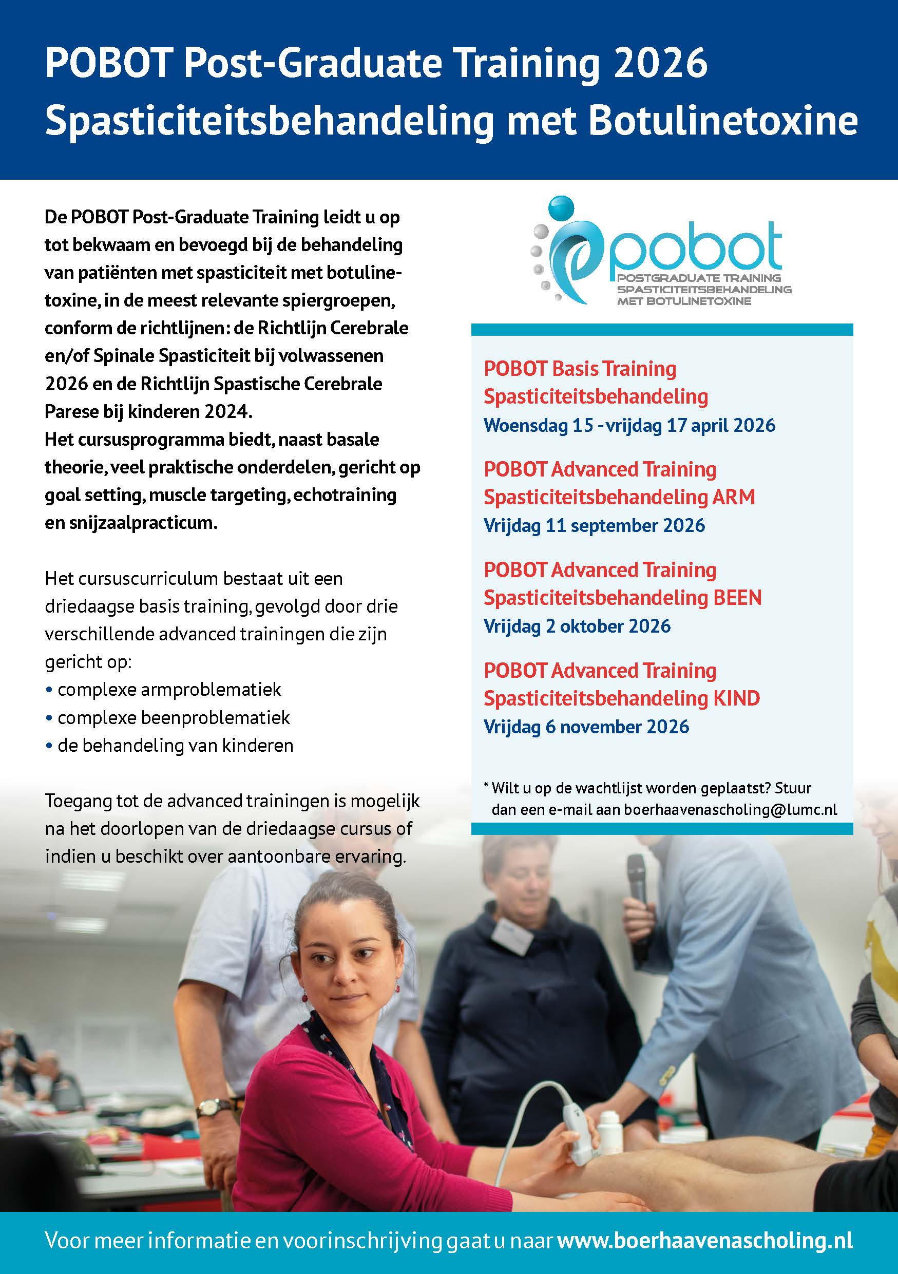 LUMC Boerhaave Nascholing organiseert dit jaar weer een trainingscyclus voor o.a. revalidatieartsen, voor Spasticiteitsbehandeling met Botulinetoxine.