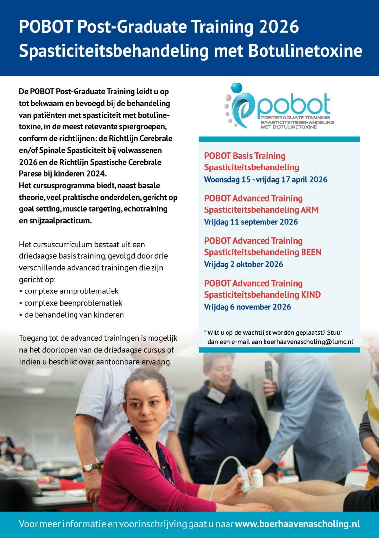 LUMC Boerhaave Nascholing organiseert dit jaar weer een trainingscyclus voor o.a. revalidatieartsen, voor Spasticiteitsbehandeling met Botulinetoxine. Het complete cursuscurriculum bestaat...