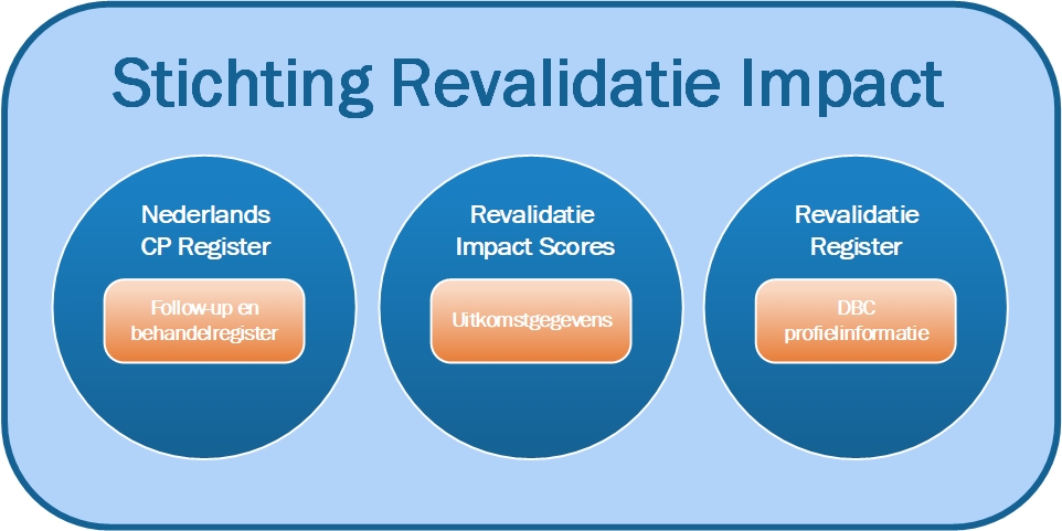 De stichting Revalidatie Impact stelt zich ten doel de revalidatiezorg verder te verbeteren. Dit doet ze door aan zorgaanbieders, patiënten(vertegenwoordigers) en op termijn zorgverzekeraars inzicht te verschaffen in de behandelresultaten van de medisch specialistische revalidatie. Door resultaten met elkaar te vergelijken kunnen revalidatie-instellingen leren en verbeteren. Momenteel werkt de stichting met de volgende registraties.