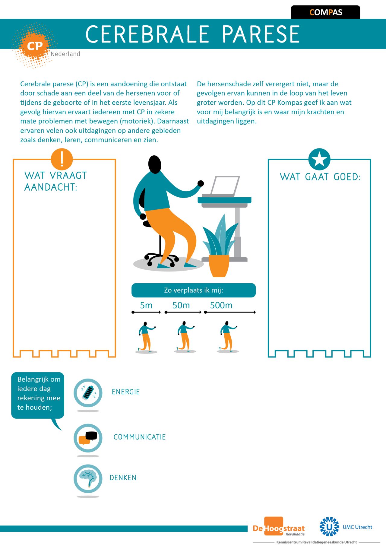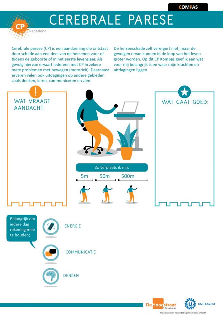 Nu is er het CP ComPas, dat daarbij kan ondersteunen. Het ComPas is een invulkaart van 2 pagina’s die mensen helpt om uit te leggen wat CP voor hen betekent. Ze kunnen erop laten zien wat ze goed kunnen, waar hun kracht ligt, en wat soms lastig is. ComPas sluit goed aan bij de WerkVersterkt-campagne van gezondheidsfondsen.